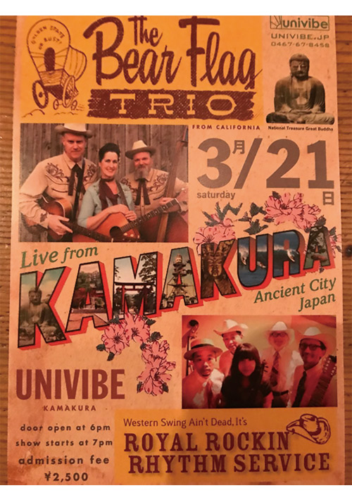 The Bear Flag TRIO✖️ROYAL ROCKIN RHYTHM SERVICELive @univibeOpen 18:00Start 19:00Admission Fee 2,500yenCheck Facebook Page↓https://ja-jp.facebook.com/bearflagtrio
