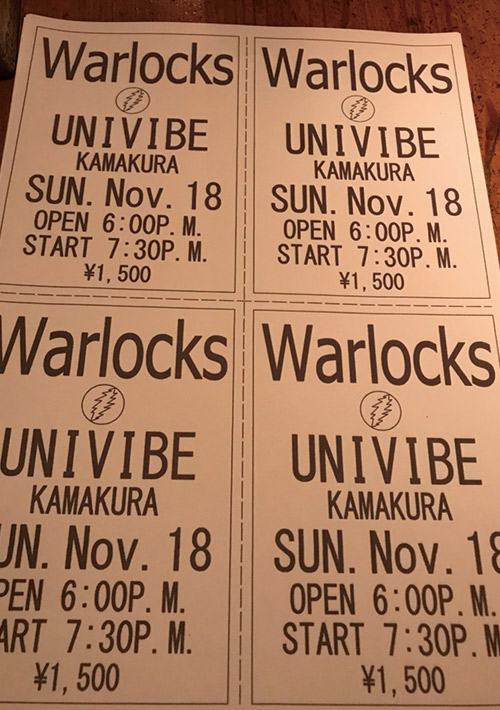 Warlocks Live @UNIVIBEOpen 18:00Start 19:30Charge 1,500yen