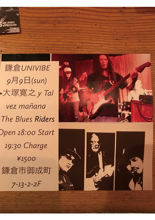 大塚寛之 y Tal vez manana The Blues Riders9月9日(日)Open 18:00Start 19:30Charge 1,500大塚寛之[Click Here!]