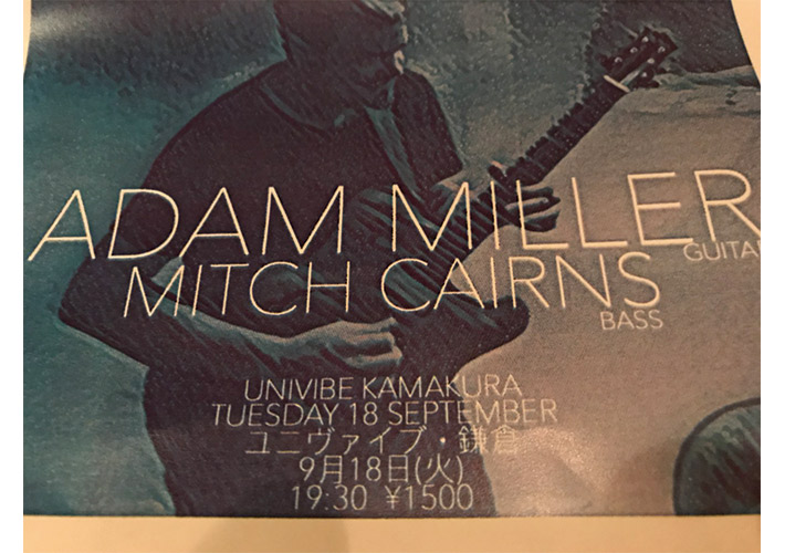 ADAM MILLER live with MITCH CAIRNS(Bass)9月18日(火)OPEN 18:00START 19:30CHARGE 1,500yenADAM MILLER[Click Here!]