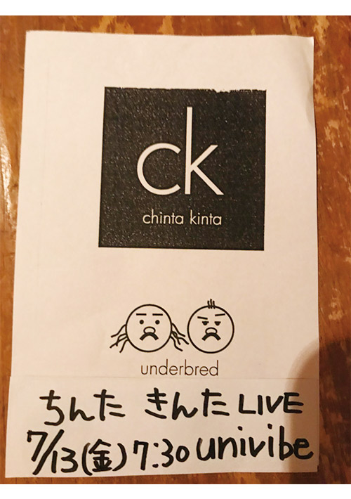 チンタキンタ LIVE @ univibe7月13日(金)open 18:00start 19:30music charge 1,500yen