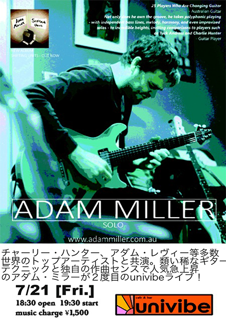 7月21日(金)Adam Miller liveopen 18:30start 19:30charge \1,500