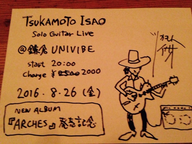 塚本功 NEW ALBUM『ARCHES』発売記念!!Solo Guitar Live8/26(金)20:00 StartCharge 2,000 yen
