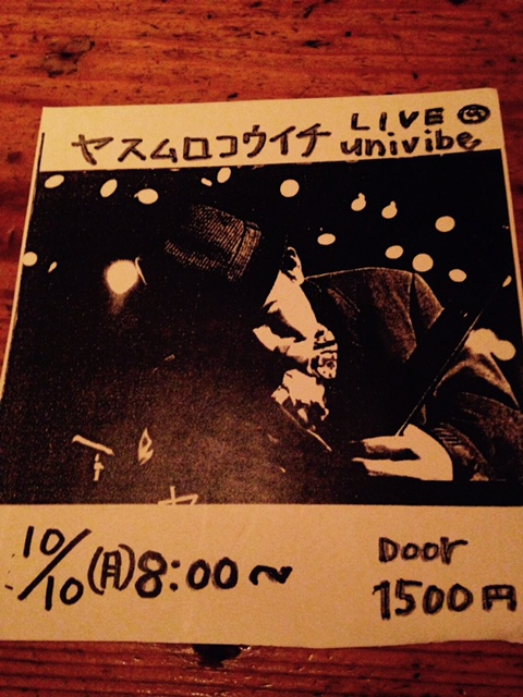 ヤスムロコイイチ LIVE @UNIVIBE10/10 (月)20:00 startCharge 1,500 yen