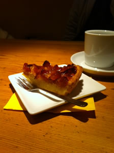本日のケーキはキャラメルアップルタルトです。温かいお飲物と一緒にいかがですか?